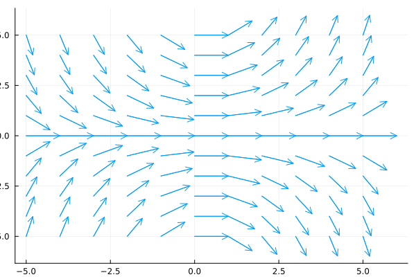 plt = plot([trace1, trace2], layout) Let us assume that for some first-order DE we can neither find a solution nor invent a method for solving it analytically. This is not as bad a predicament as one might think, since the DE itself can be used to investigate how its solutions “behave”. Even if an analytical or numerical solution has been found this qualitative analysis can be used to confirm the results. Direction fields tell us, in an approximate sense, what a solution curve must look like without actually solving the equation.